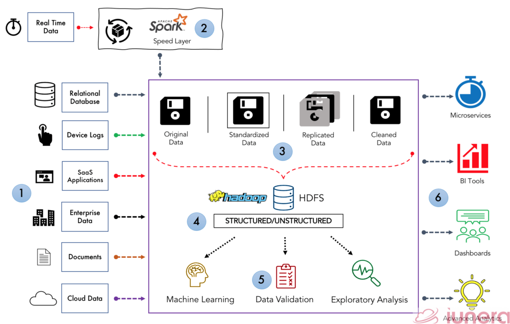 Microservices can also help make the development, deployment, and maintenance of the data lake more flexible and agile. The essence that it is directly connected to the data lake enables it to run different independent services for different applications, all from a single data source.